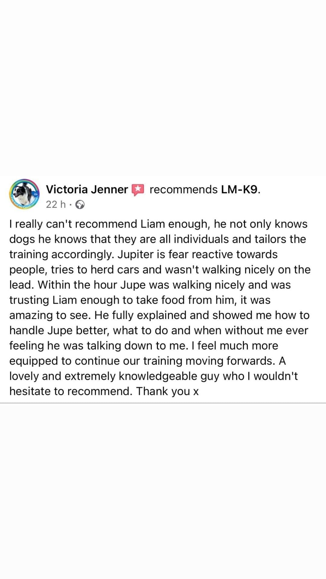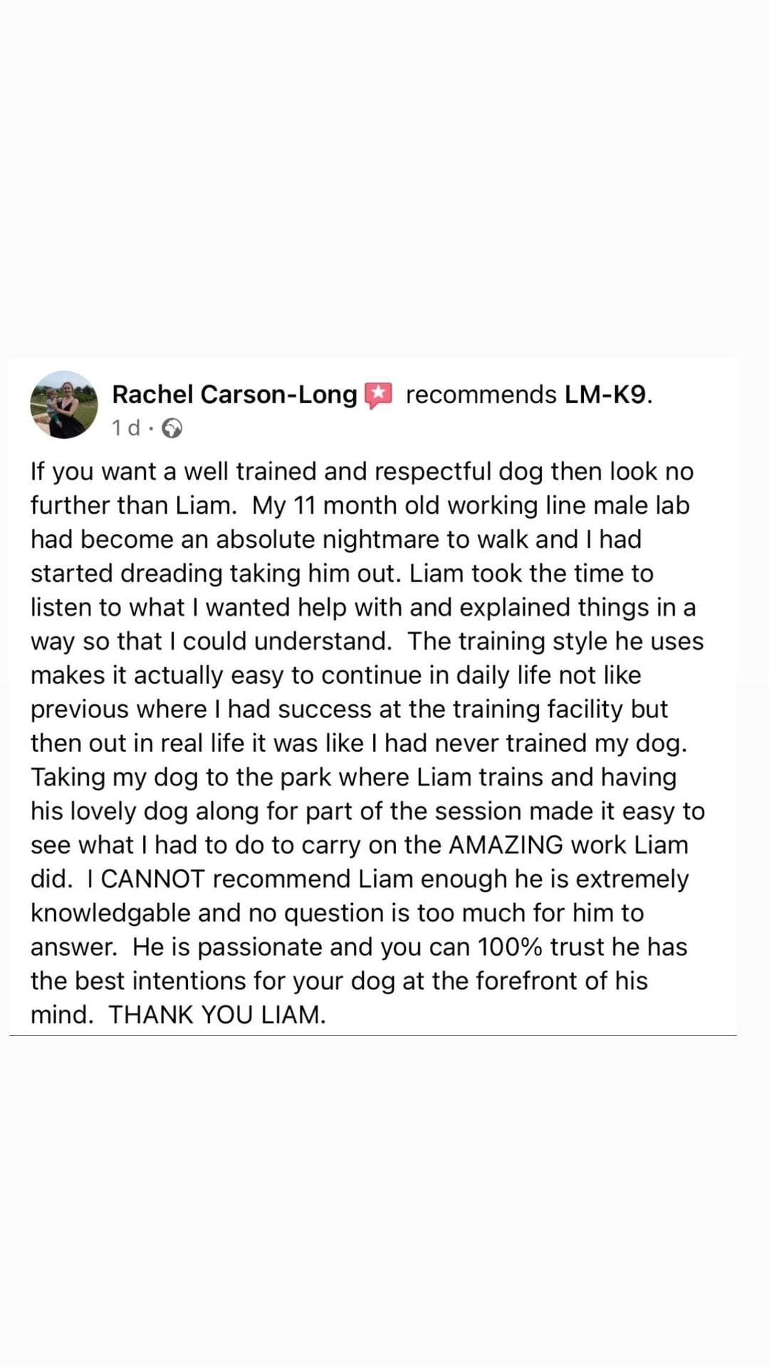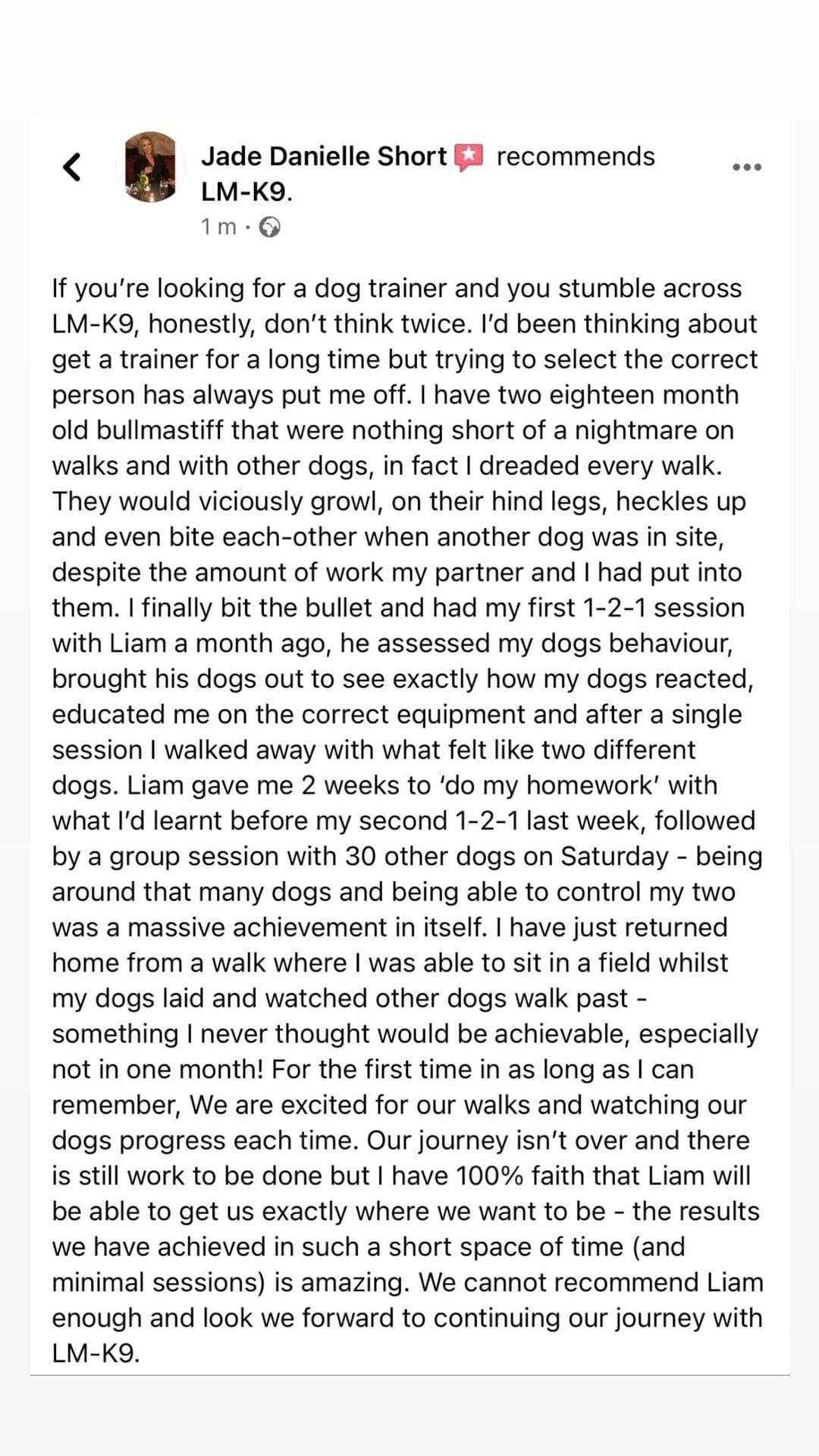 Liam is an expert dog trainer based in the UK that specialises in training dogs that others think cannot be trained. He has a tailored approach to training, appreciating that every dog and every owner is unique. He brings a wealth of experience from basic obedience to competition level, bitework and protection work.